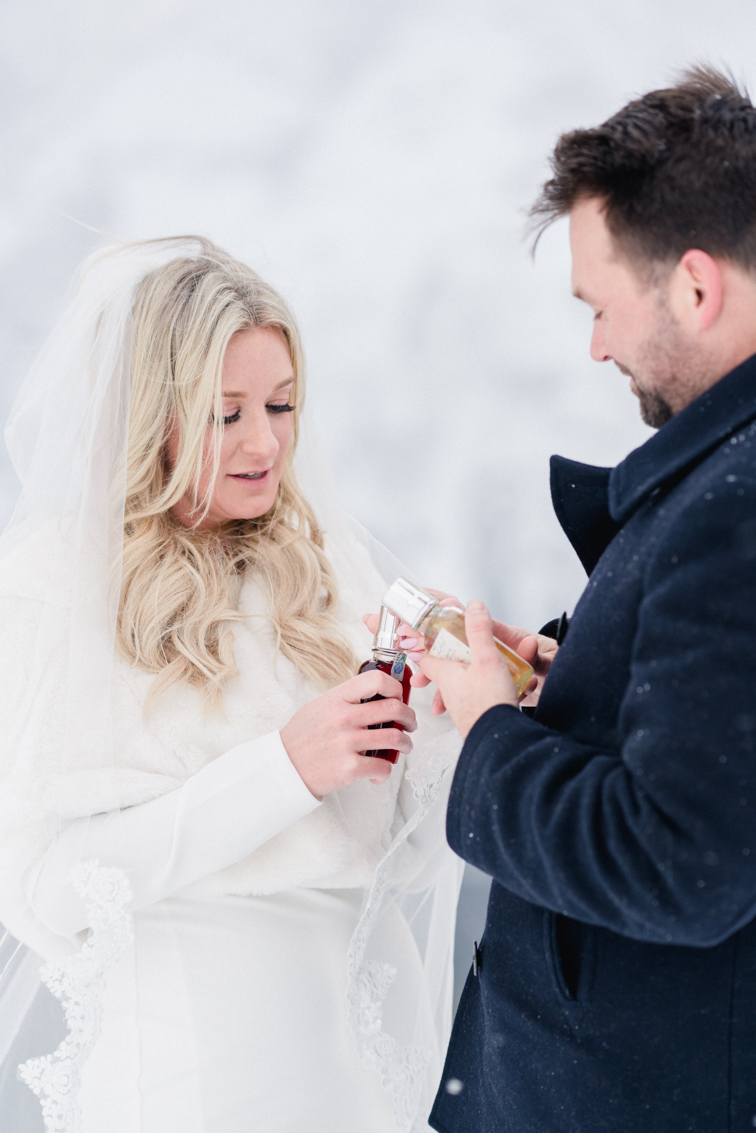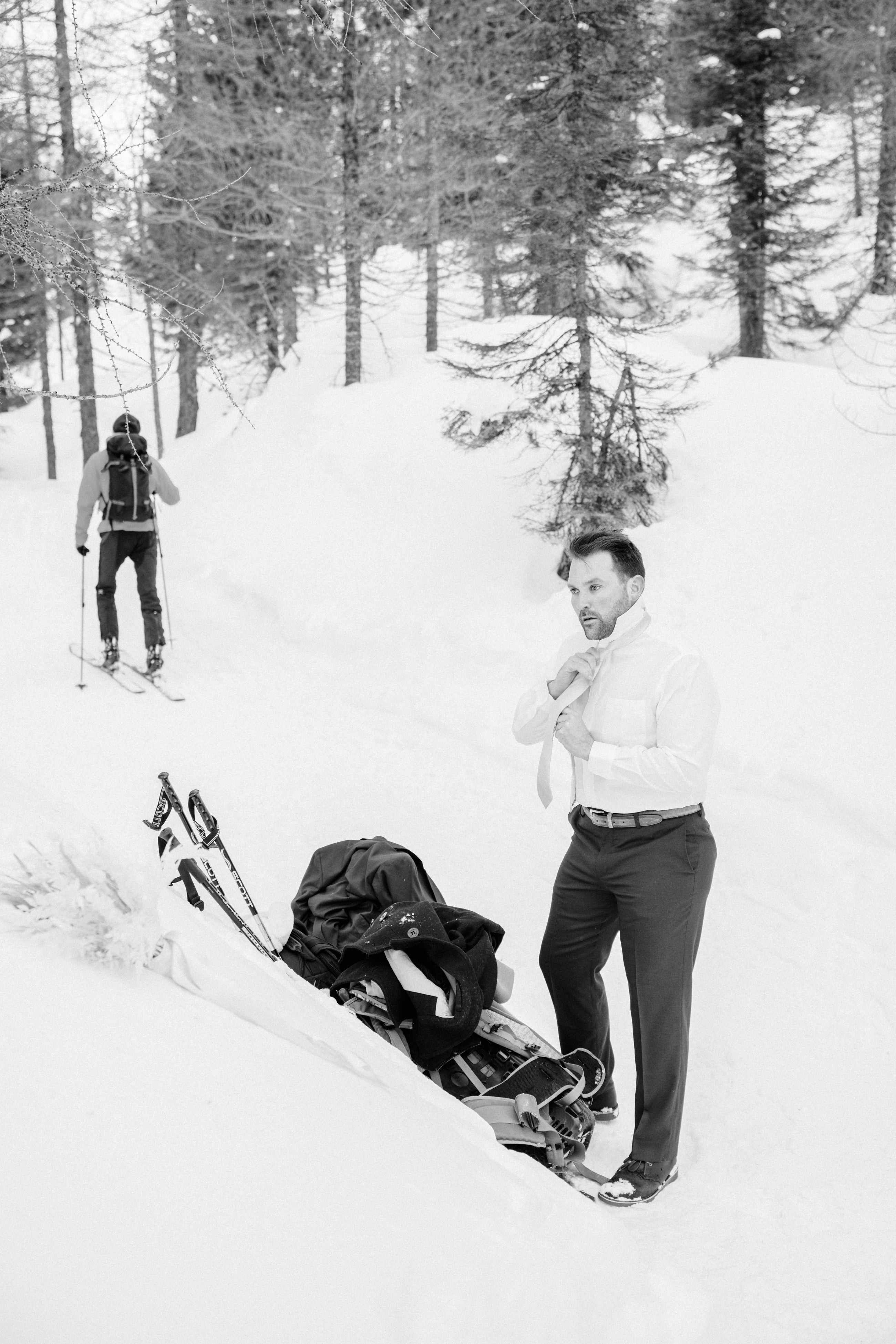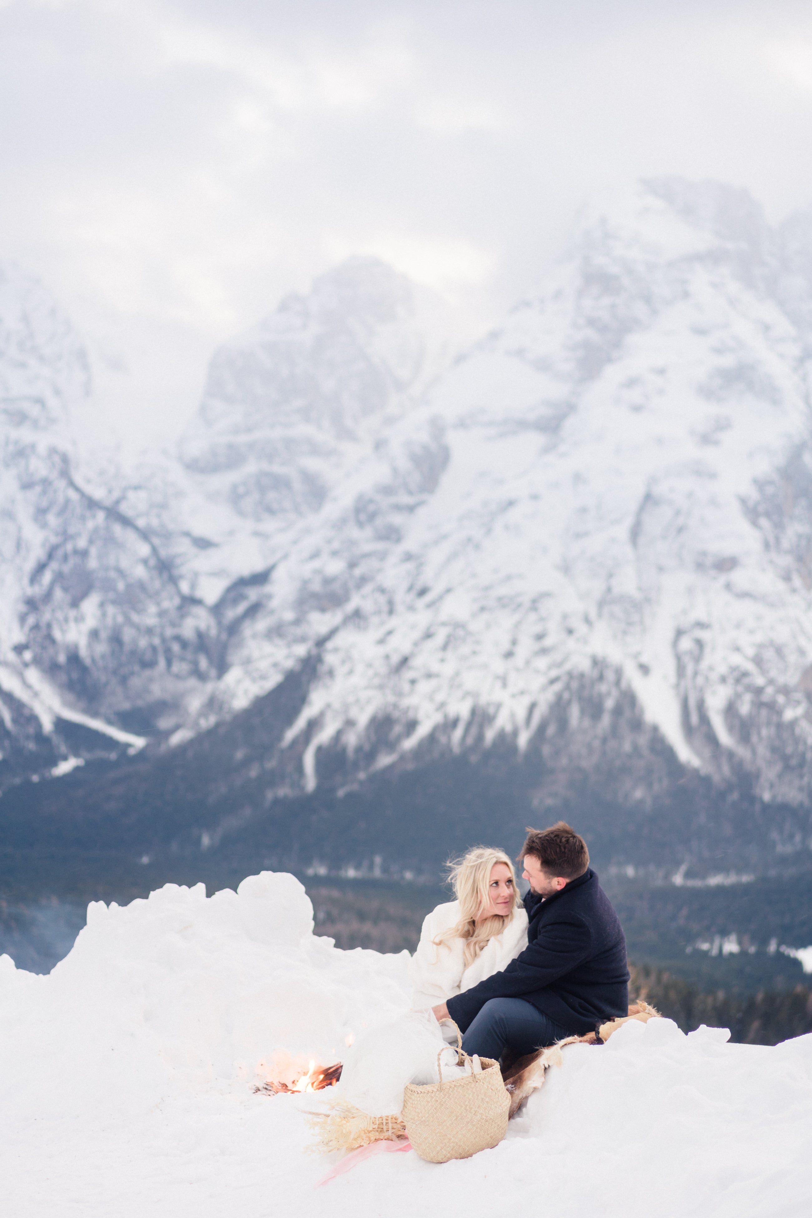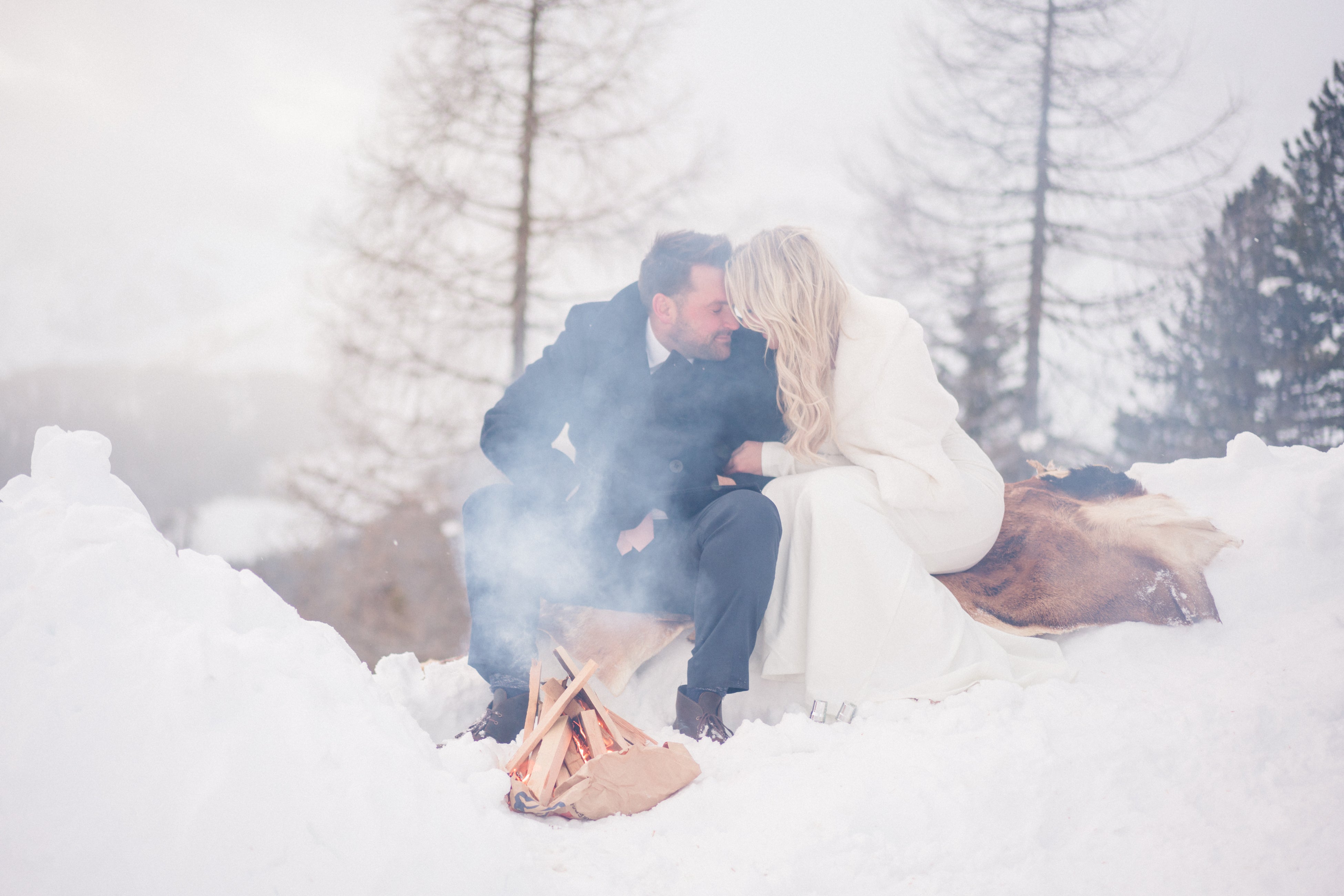 A stunning winter wedding in the Dolomites - where these two eloped on a mountain top with us as the witnesses.